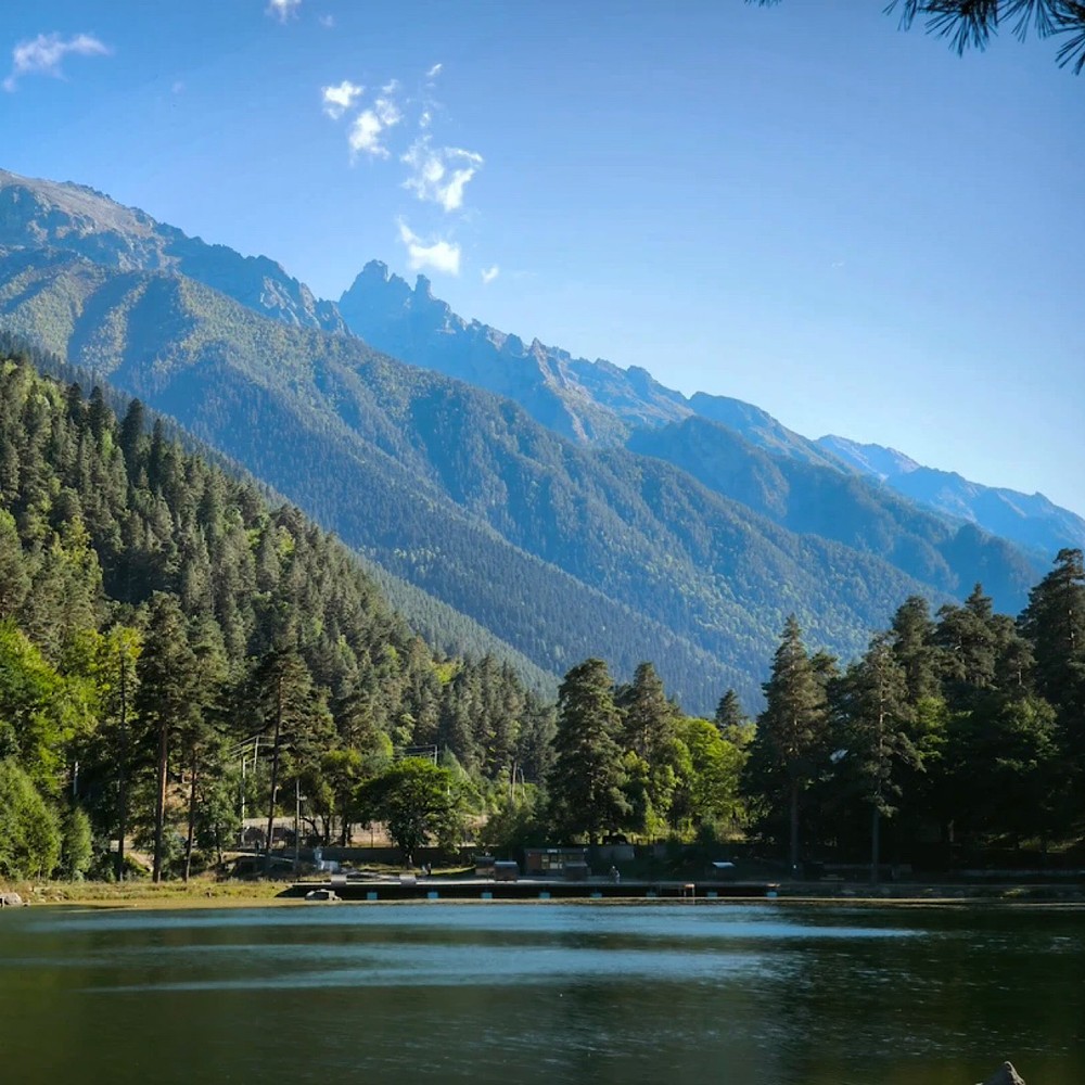 - Кара-Кёль в Тебердинском заповеднике — «чёрное» озеро, отражающее красоту кавказских гор.