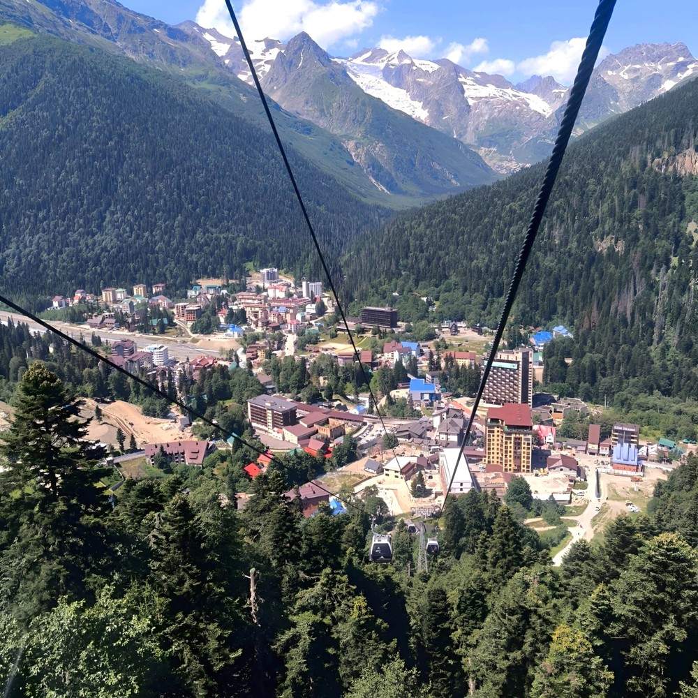 - Домбай и гостиница «Тарелка». Подъём на канатной дороге и кристально чистая вода горной реки.